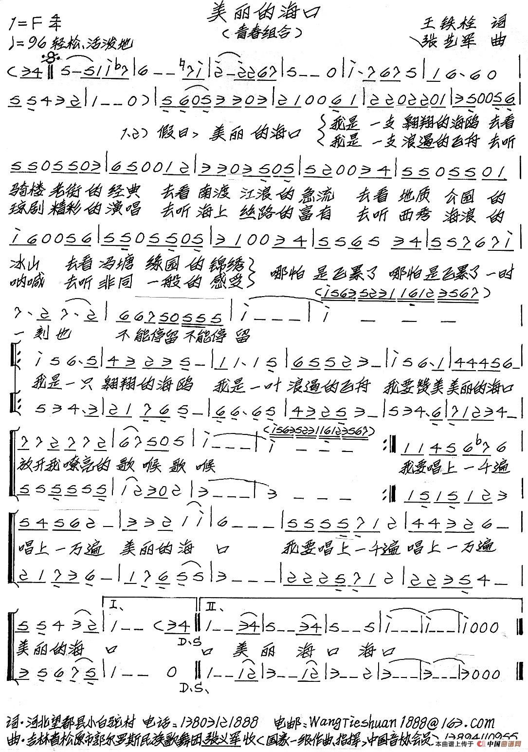 致谢:《中国曲谱网》衷心感谢作者老师馈赠原版歌谱!