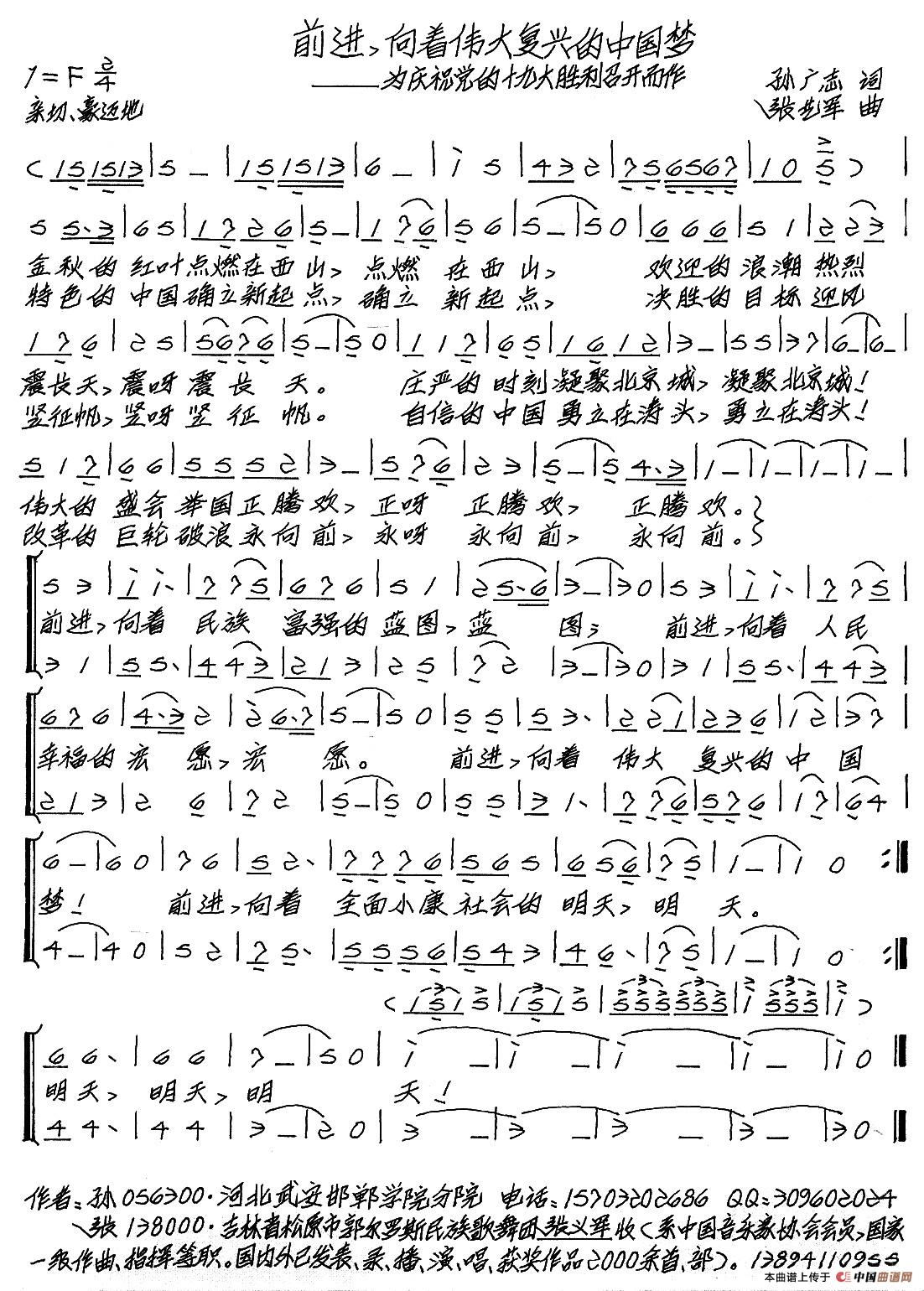 关于《前进,向着伟大复兴的中国梦》曲谱的评论
