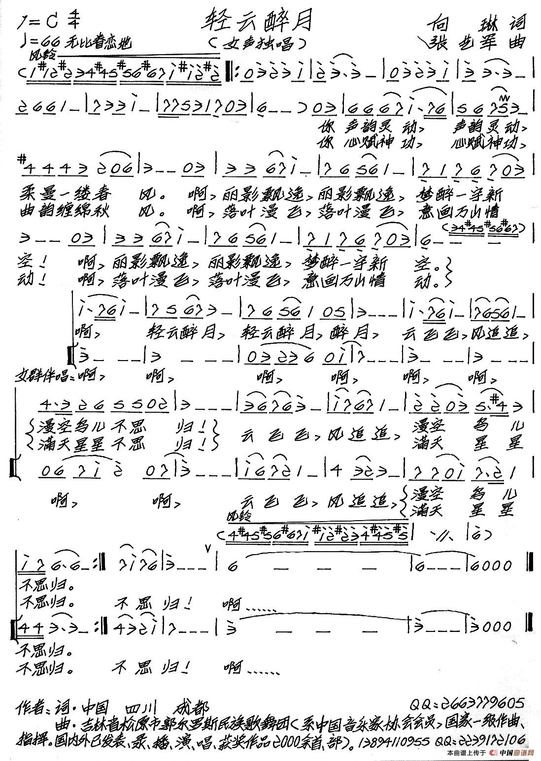 关于《轻云醉月》曲谱的评论