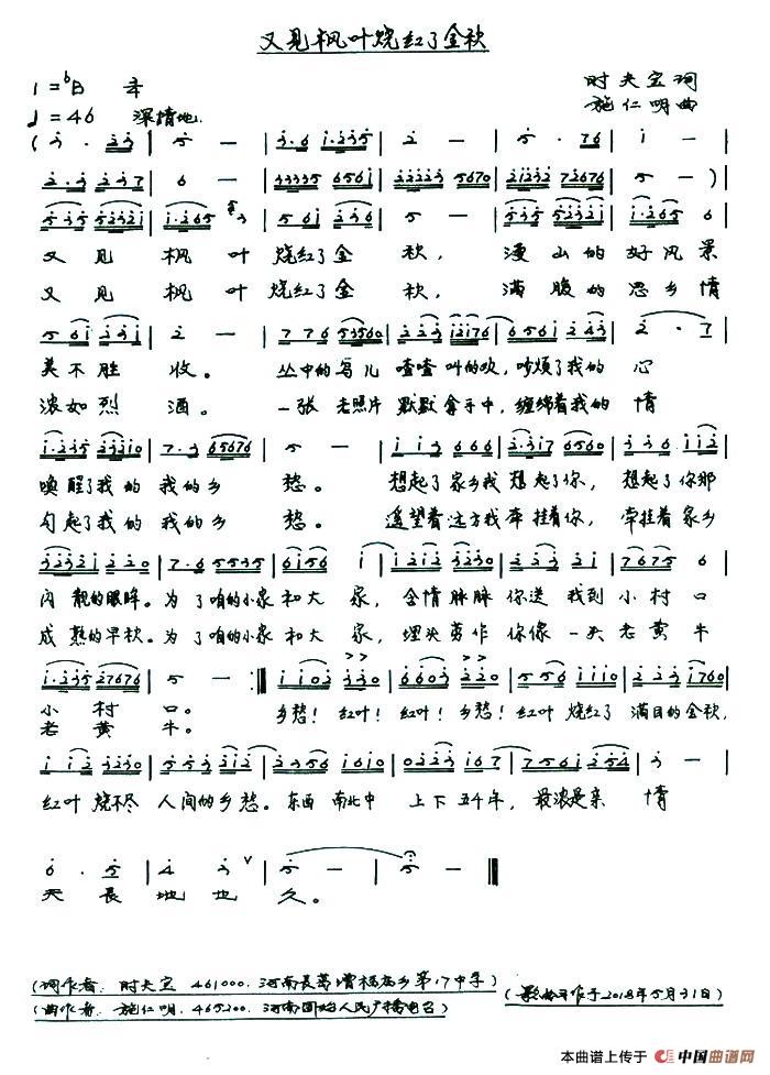 关于《又见枫叶烧红了金秋》曲谱的评论