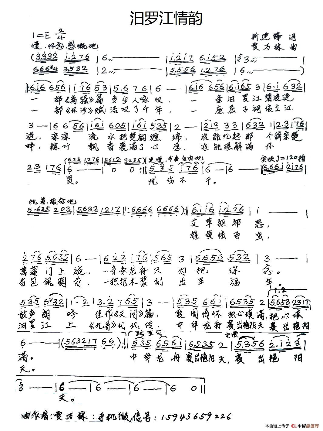 关于《汨罗江情韵 》曲谱的评论