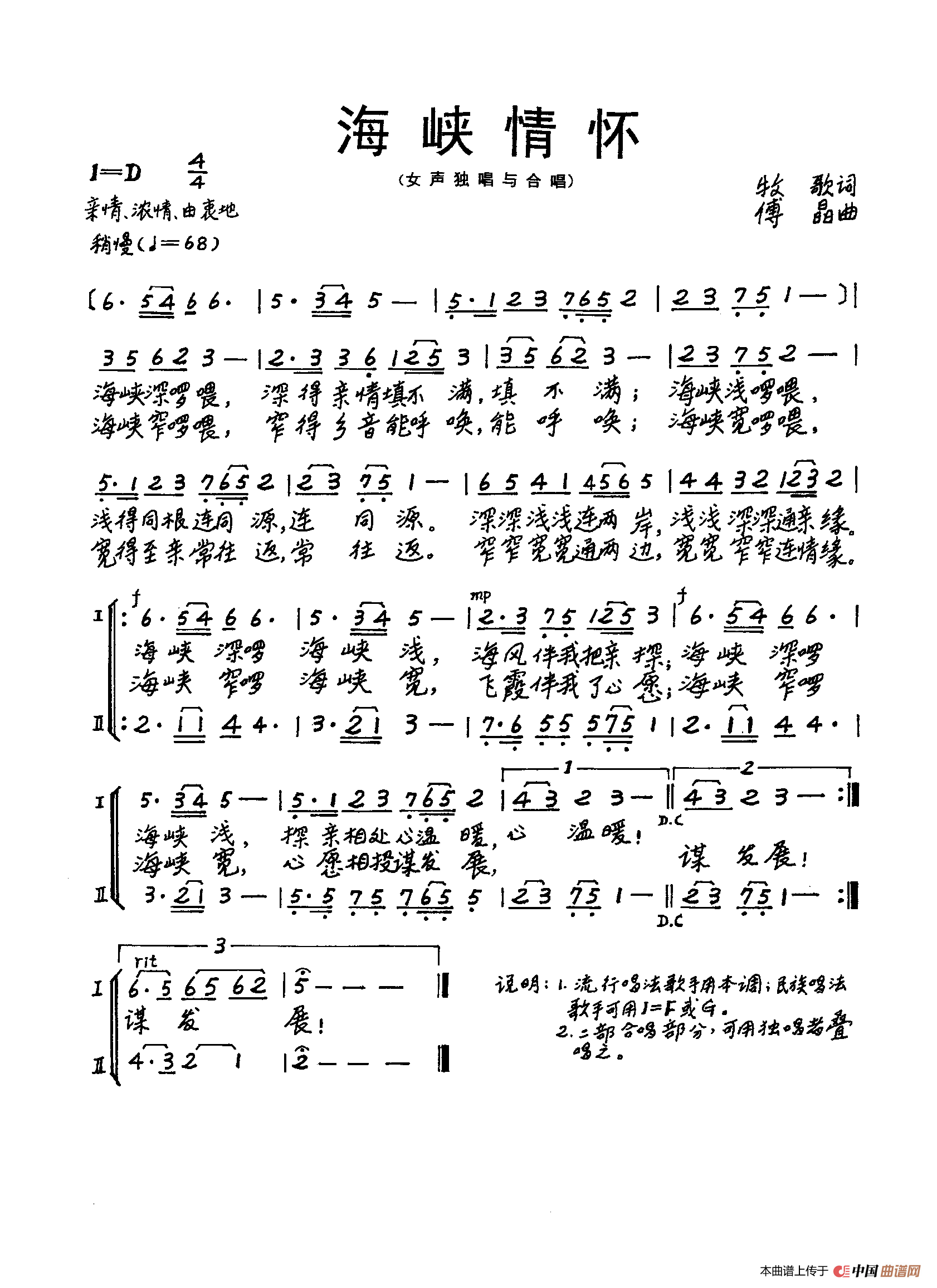 关于《海峡情怀》曲谱的评论
