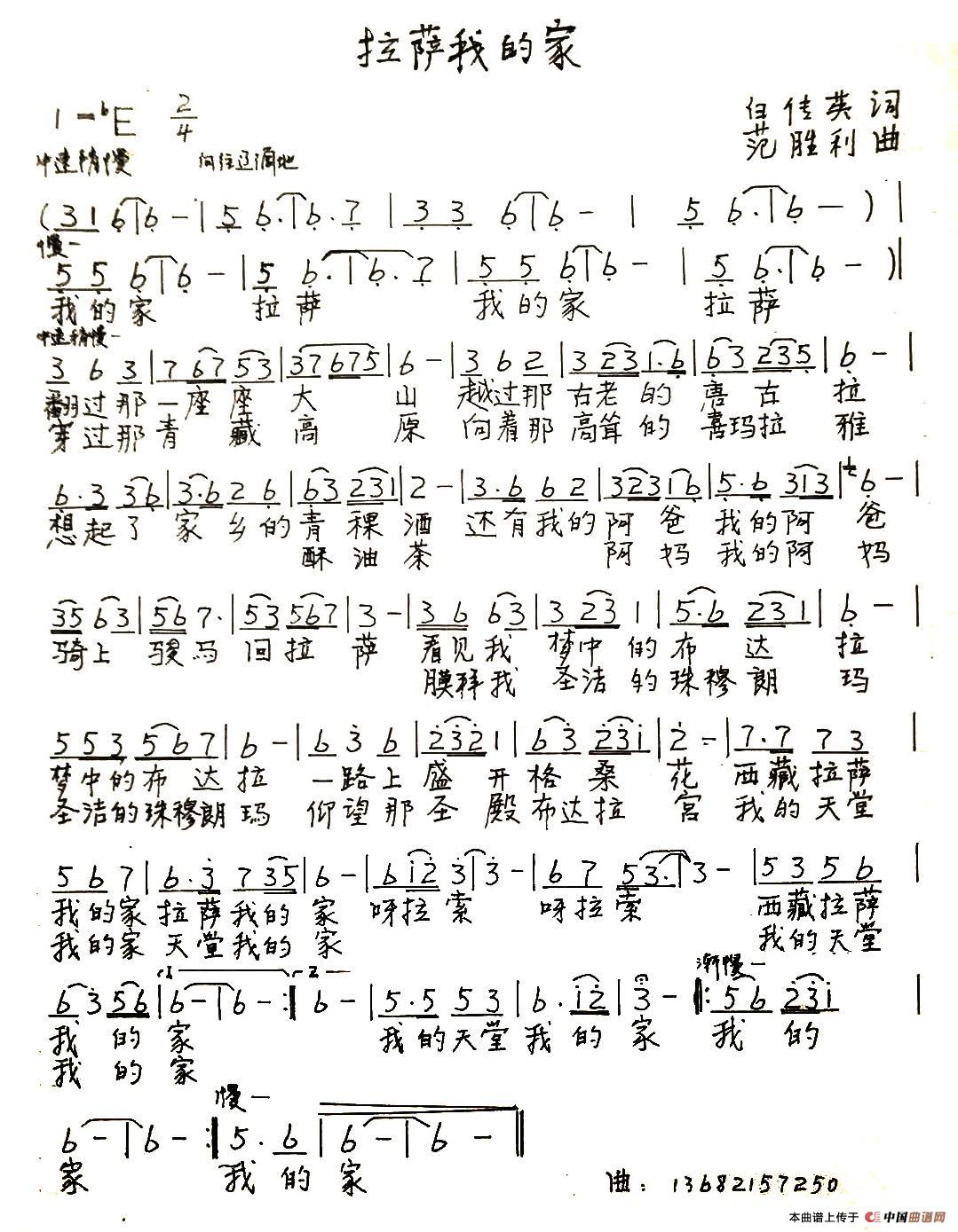 关于《拉萨我的家》曲谱的评论