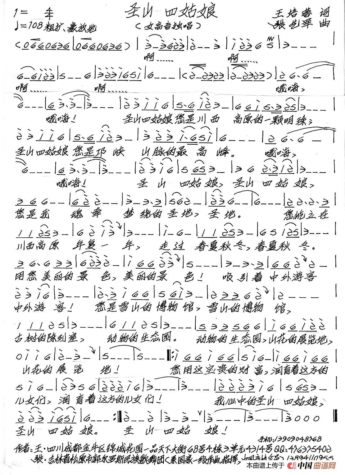 致谢:《中国曲谱网》衷心感谢作者老师馈赠原版歌谱!