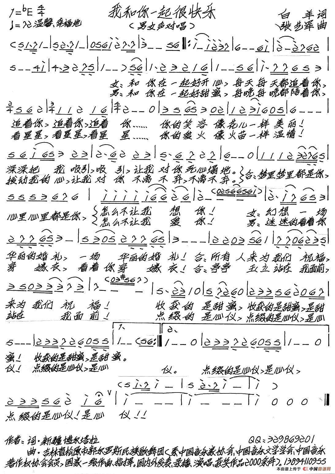 关于《我和你一起很快乐》曲谱的评论