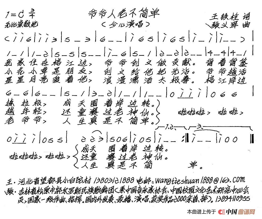 致谢:《中国曲谱网》衷心感谢作者老师馈赠原版歌谱!