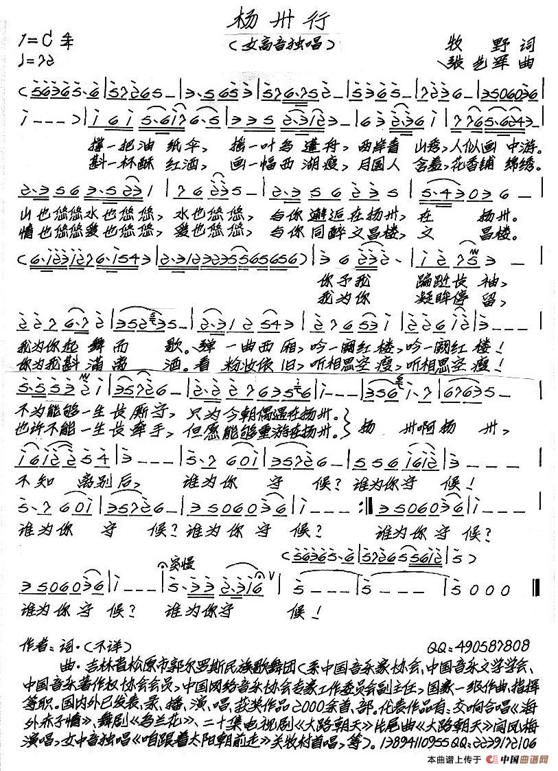致谢:《中国曲谱网》衷心感谢作者老师馈赠原版歌谱!