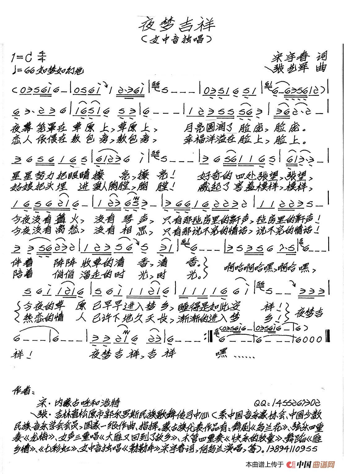 关于《夜梦吉祥》曲谱的评论
