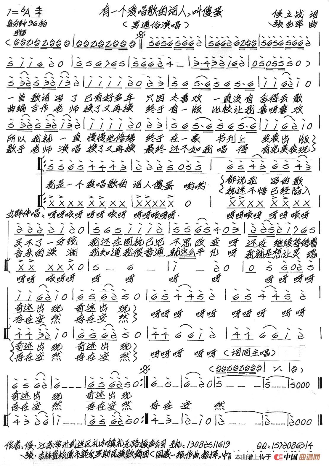 关于《有一个爱唱歌的词人,叫傻蛋》曲谱的评论