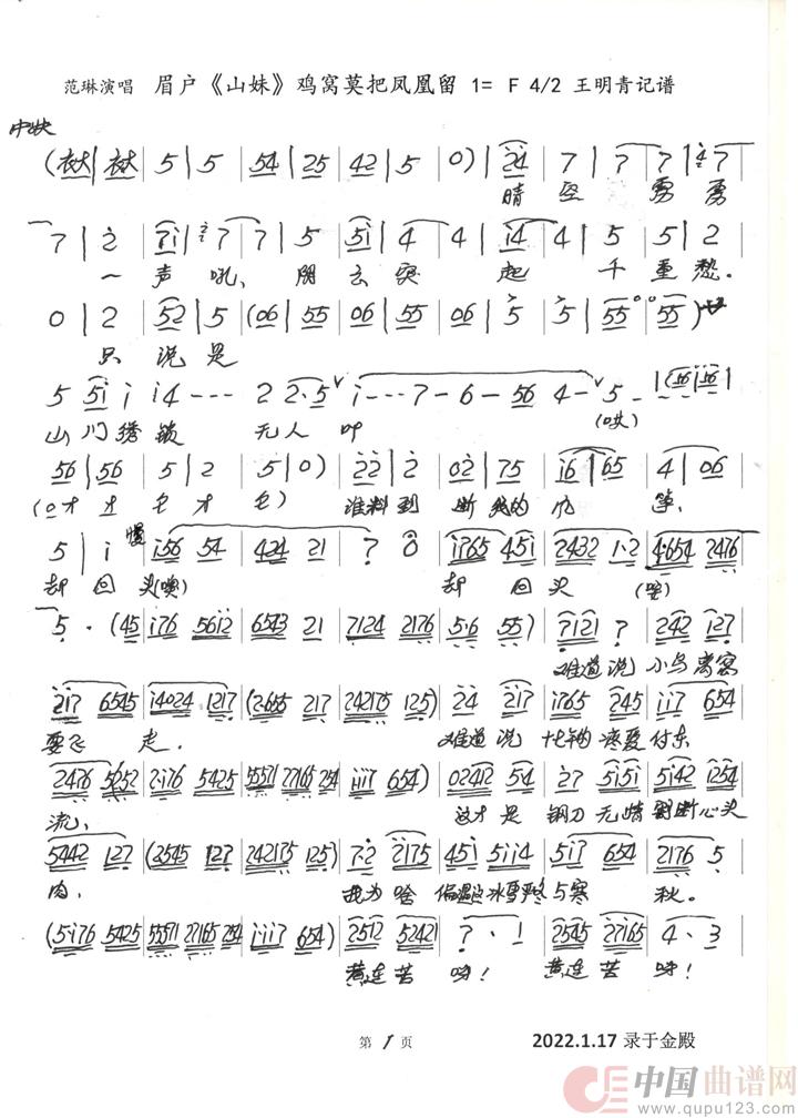 关于《眉户《山妹》鸡窝莫把凤凰留》曲谱的评论
