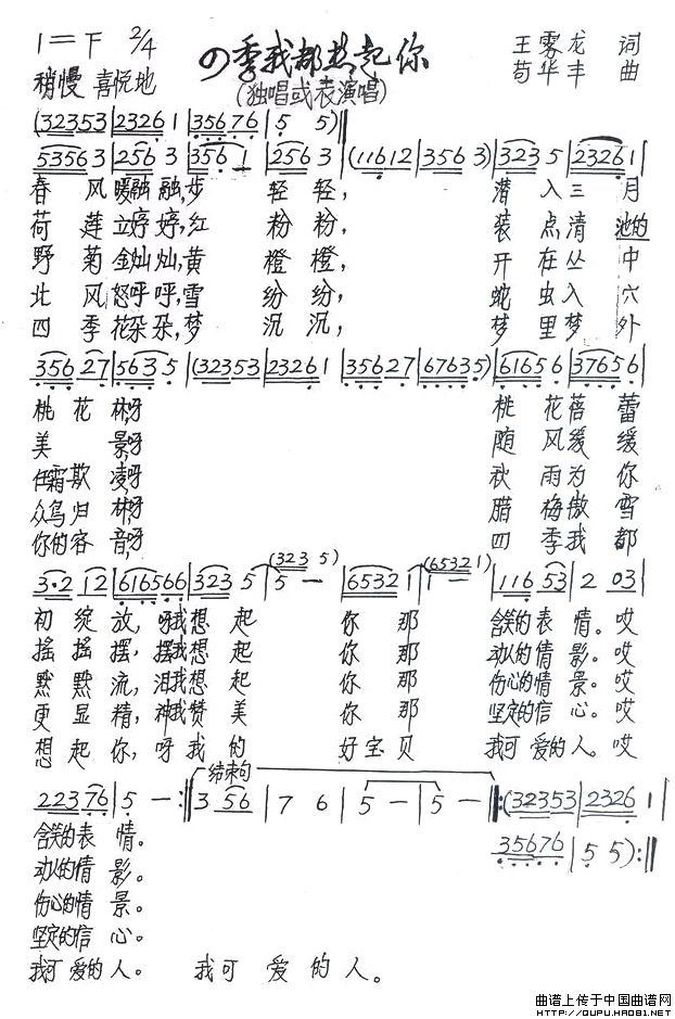 关于《四季我都想起你》曲谱的评论