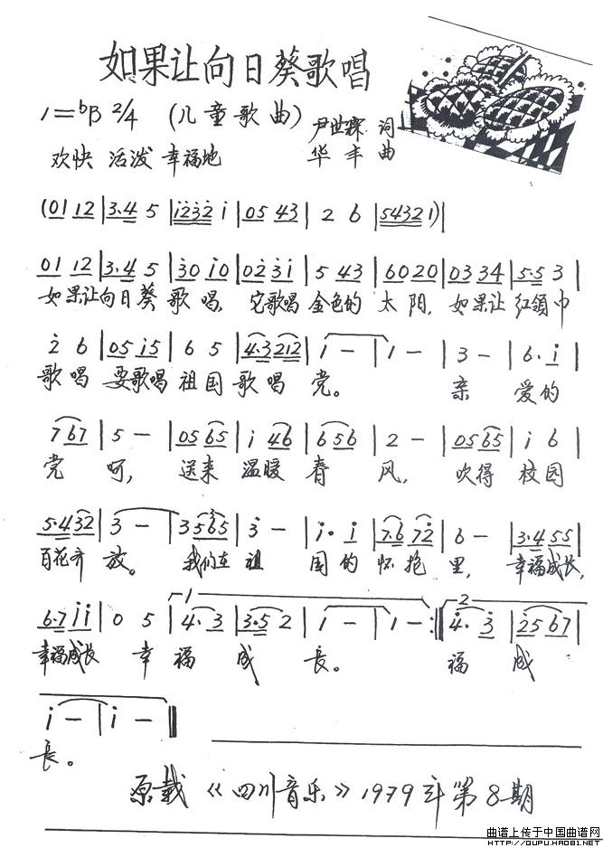 当前位置: 首页 谱友园地 手稿谱区 如果让向日葵歌唱