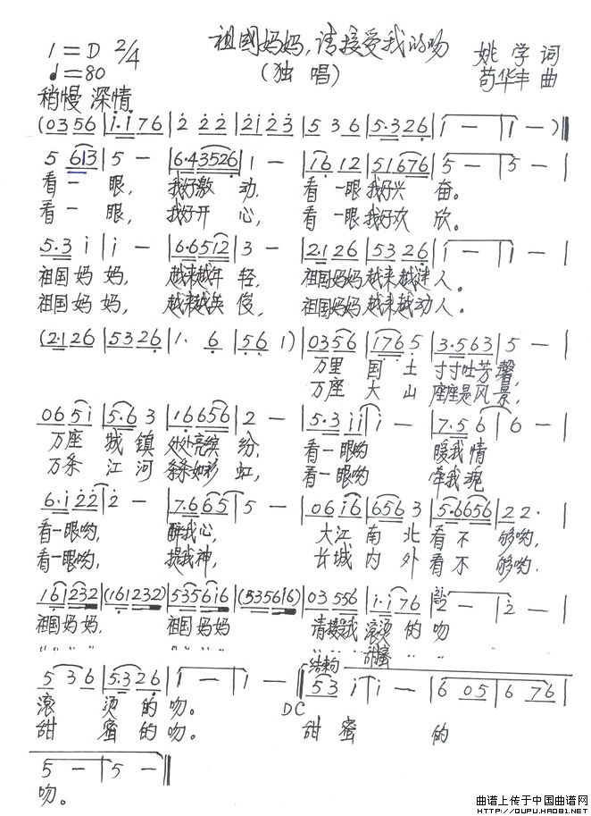 关于《祖国妈妈,请接受我的吻》曲谱的评论
