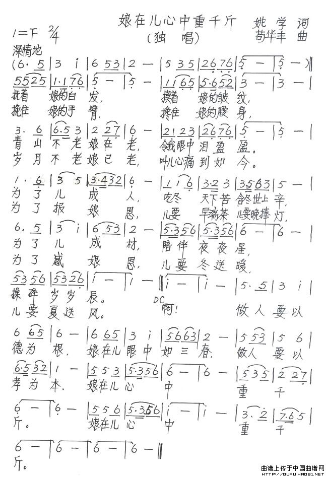 当前位置: 首页 谱友园地 手稿谱区 娘在儿心中重千斤