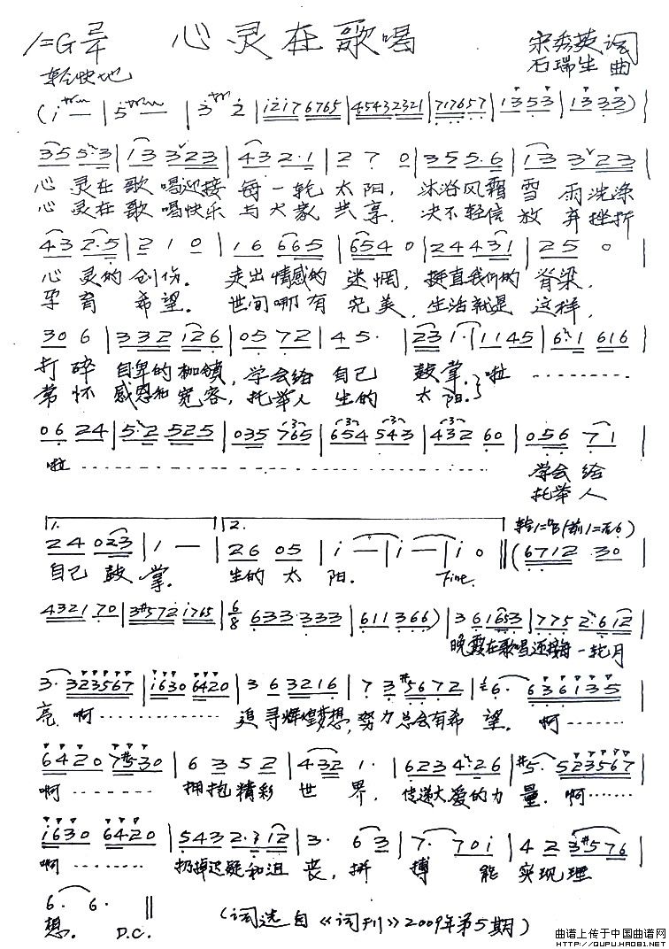 关于《心灵在歌唱》曲谱的评论