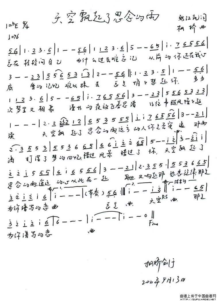 关于《天空飘起了思念的雨》曲谱的评论