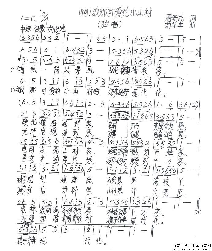 关于《啊!我那可爱的小山村!》曲谱的评论