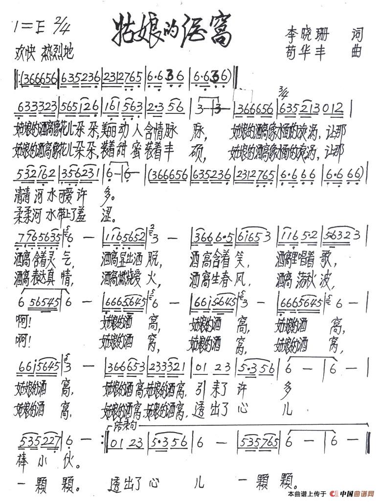 关于《姑娘的酒窝》曲谱的评论