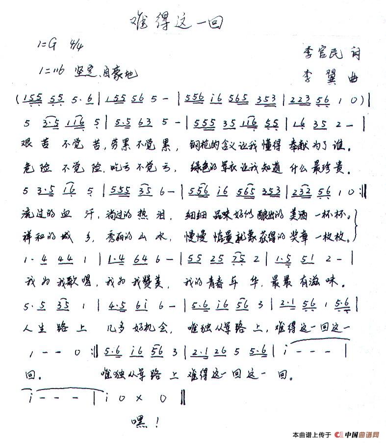 关于《难得这一回》曲谱的评论