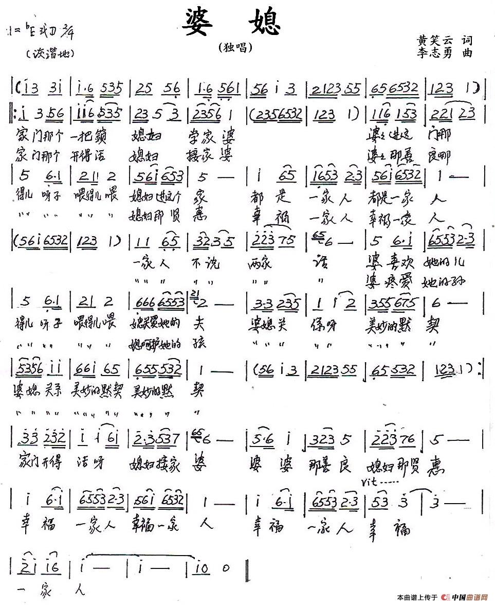 反映婆媳和睦相处,非常感谢李志勇老师谱曲
