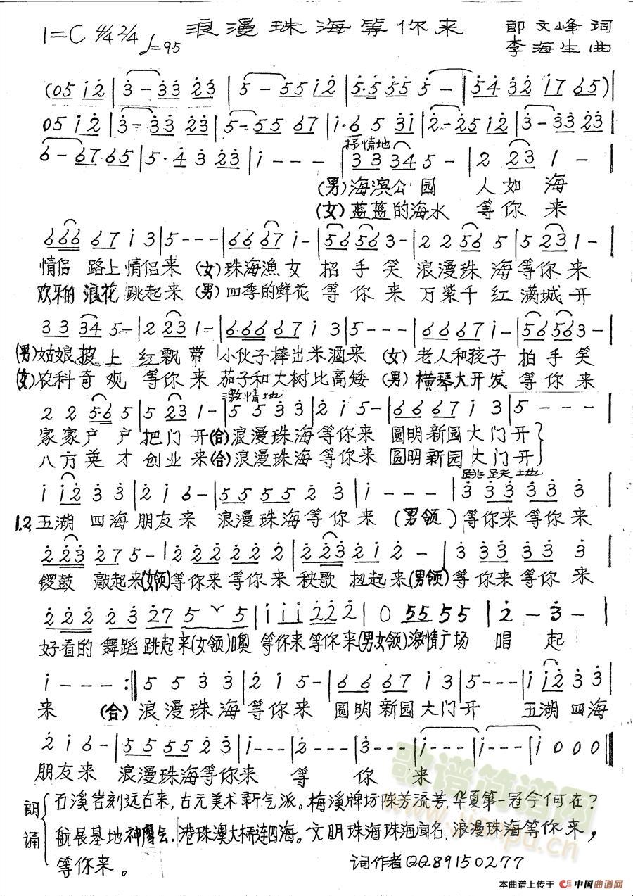 关于《浪漫珠海等你来》曲谱的评论