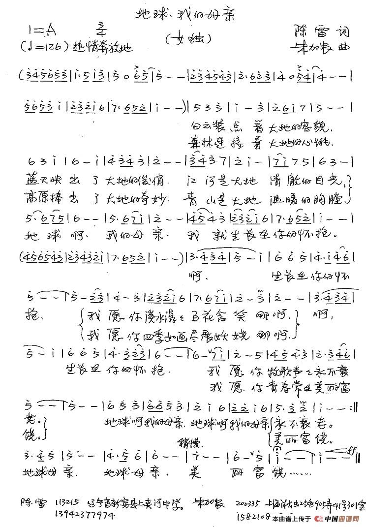 关于《地球,我的母亲》曲谱的评论