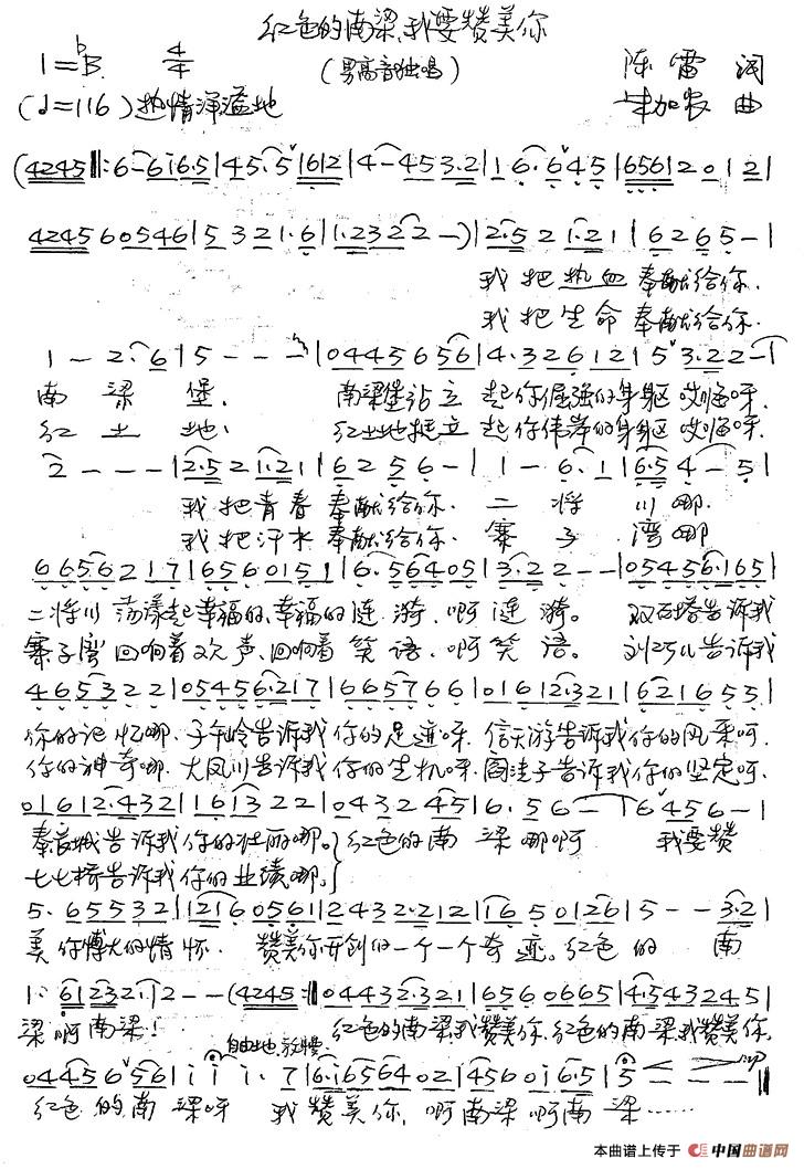 关于《红色的南梁,我要赞美你》曲谱的评论