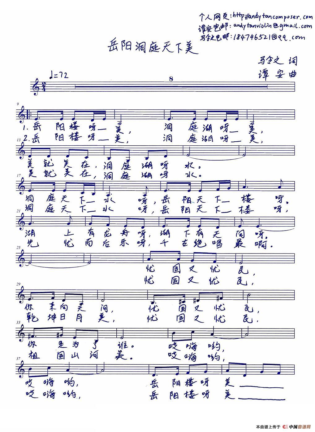 关于《岳阳洞庭天下美》曲谱的评论