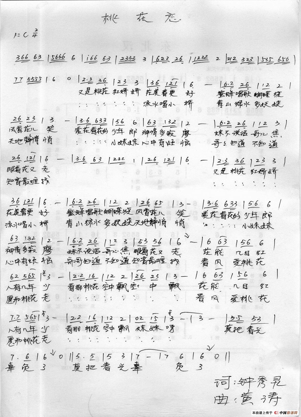 当前位置: 首页 谱友园地 手稿谱区 桃花恋(钟秀灵词 黄涛曲)