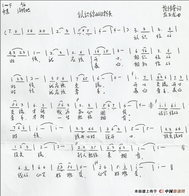 关于《认识你的时候》曲谱的评论