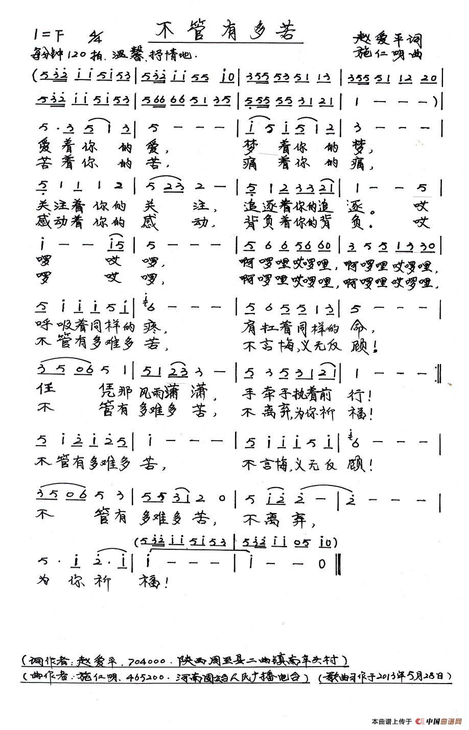 关于《不管有多苦》曲谱的评论