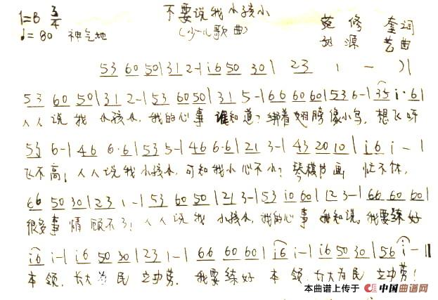 关于《不要说我小孩小》曲谱的评论