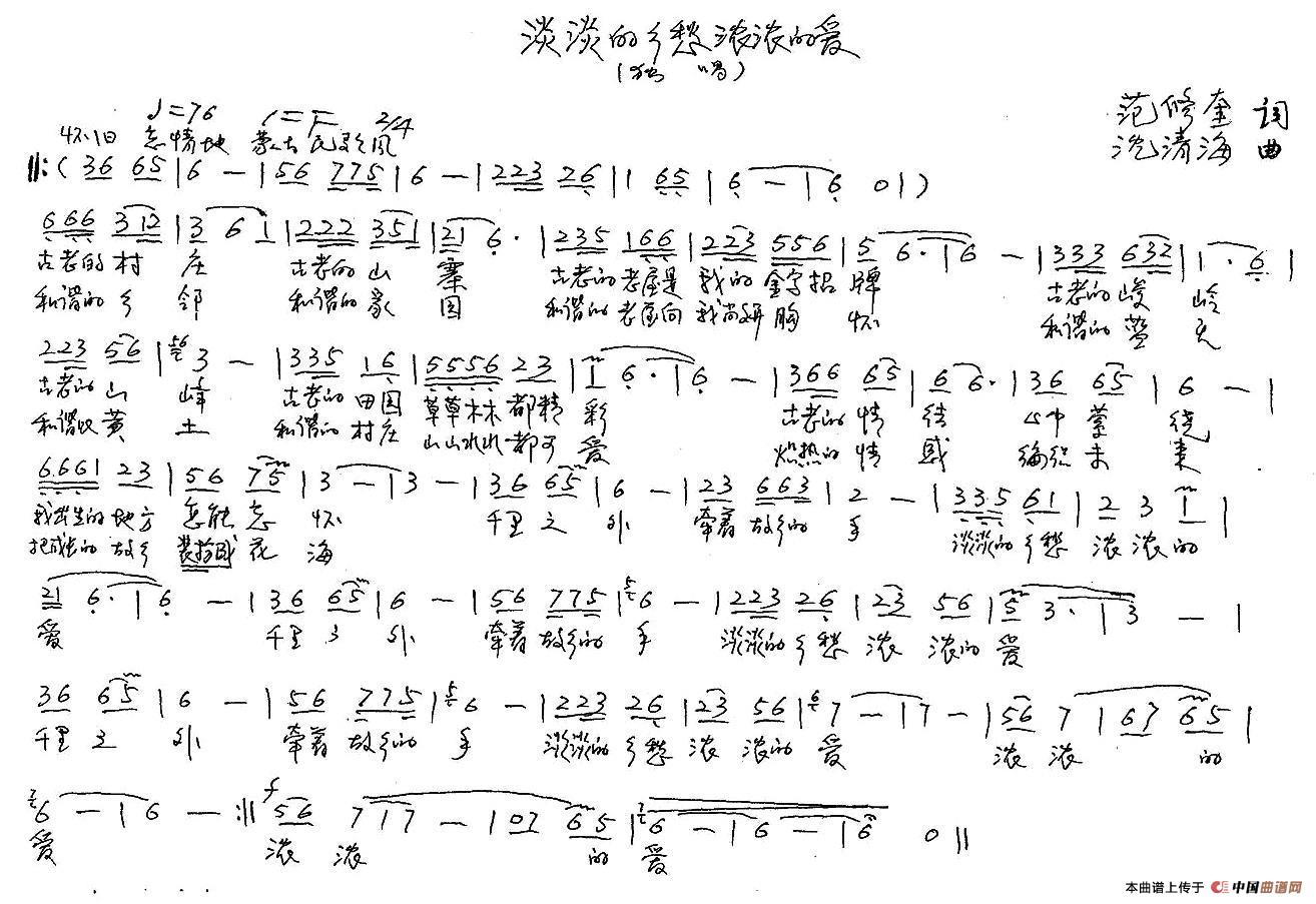 关于《淡淡的乡愁浓浓的爱》曲谱的评论