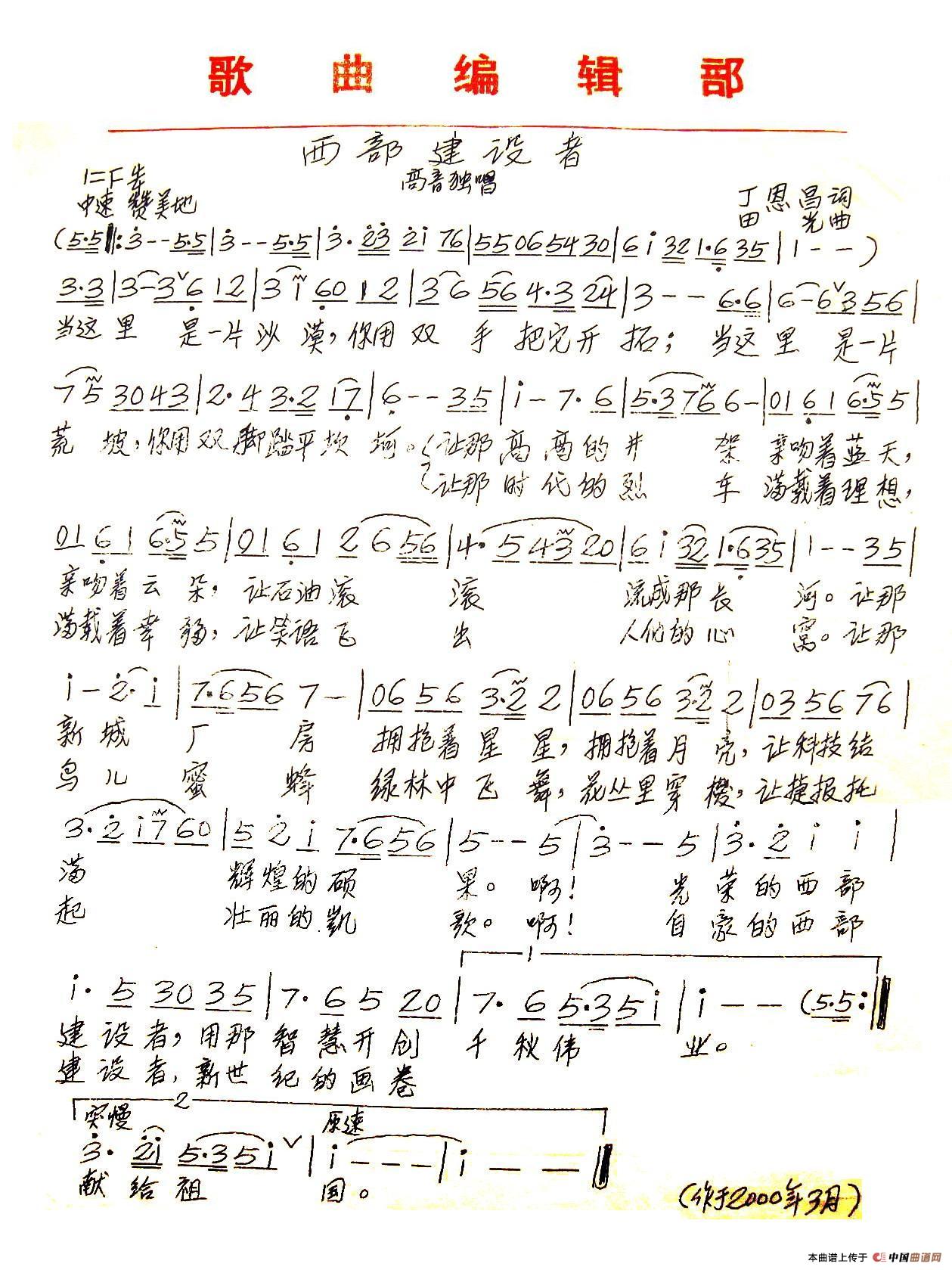 关于《西部建设者》曲谱的评论