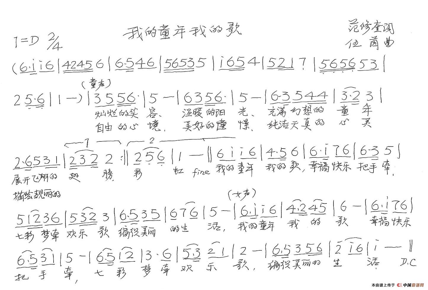 当前位置: 首页 谱友园地 手稿谱区 我的童年我的歌(范修奎词 伍茵曲、儿歌)