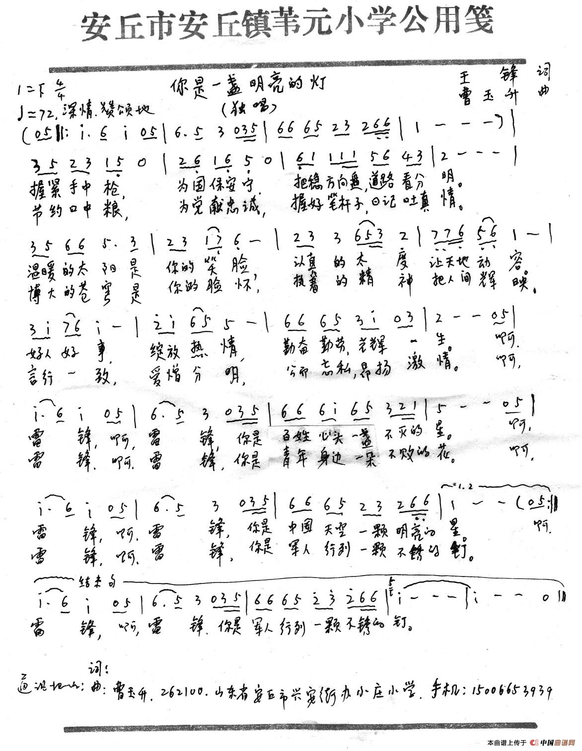 关于《你是一盏明亮的灯》曲谱的评论