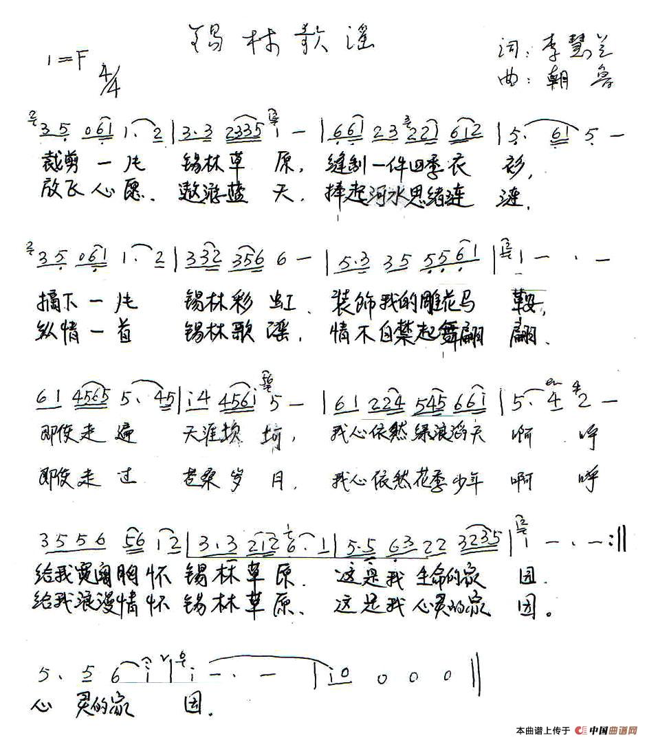 关于《锡林歌谣》曲谱的评论