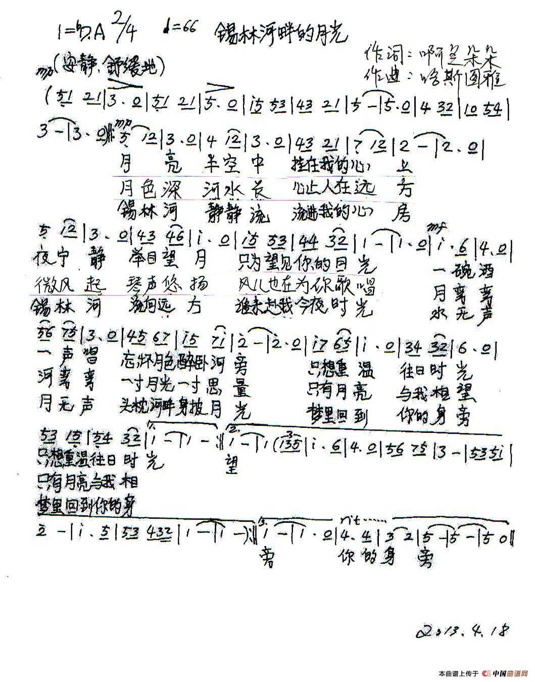 关于《锡林河畔的月光》曲谱的评论