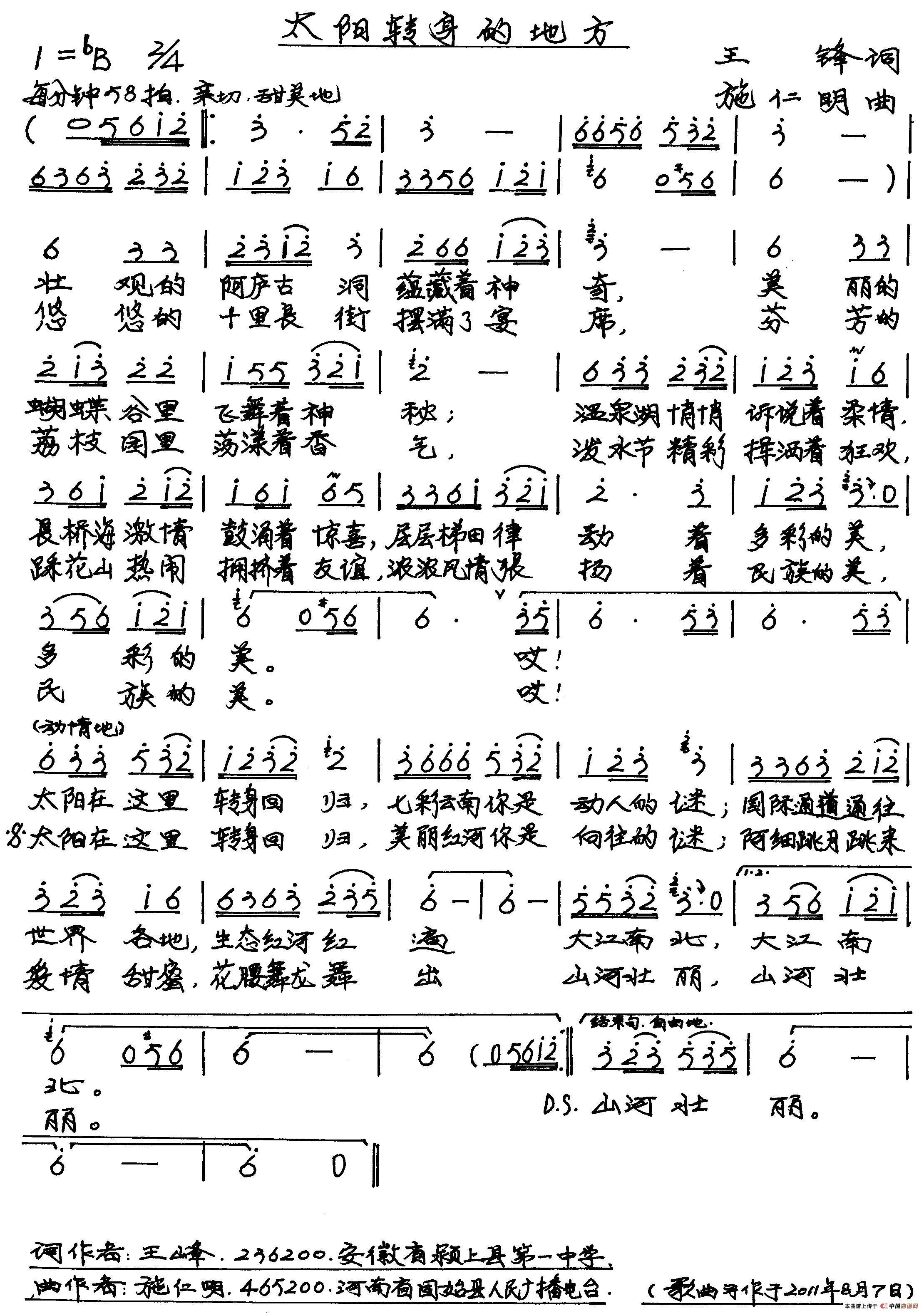 关于《太阳转身的地方》曲谱的评论