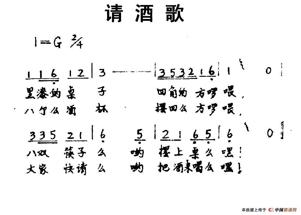 关于《请酒歌》曲谱的评论