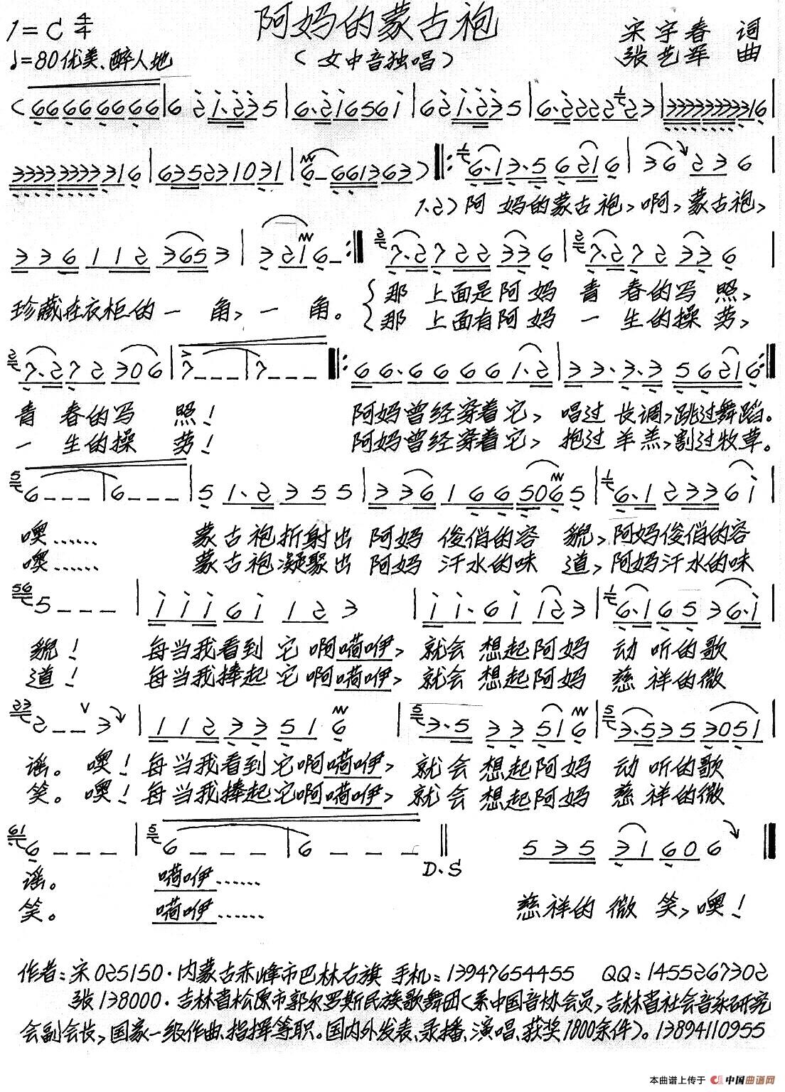 关于《阿妈的蒙古袍》曲谱的评论
