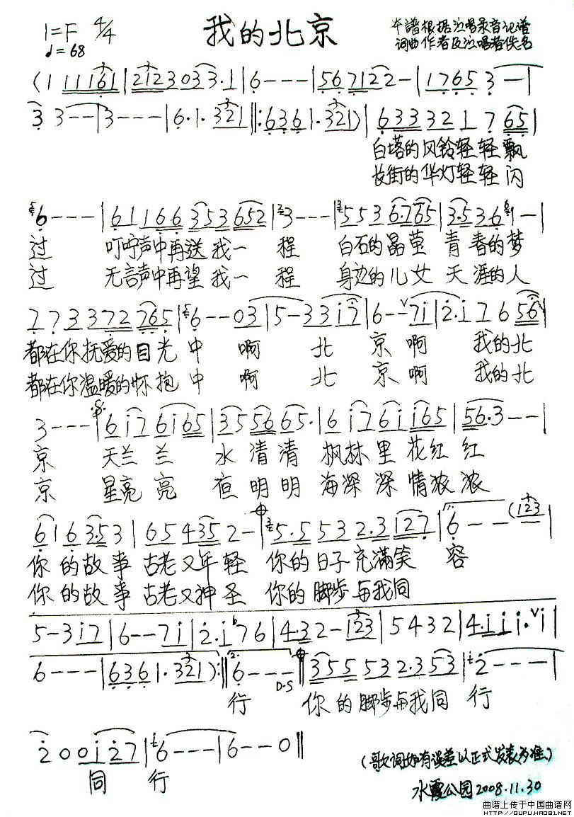 关于《我的北京》曲谱的评论