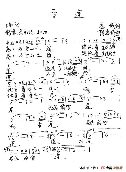当前位置: 首页 谱友园地 手稿谱区 雪莲(慕城词 陈惠婷曲)