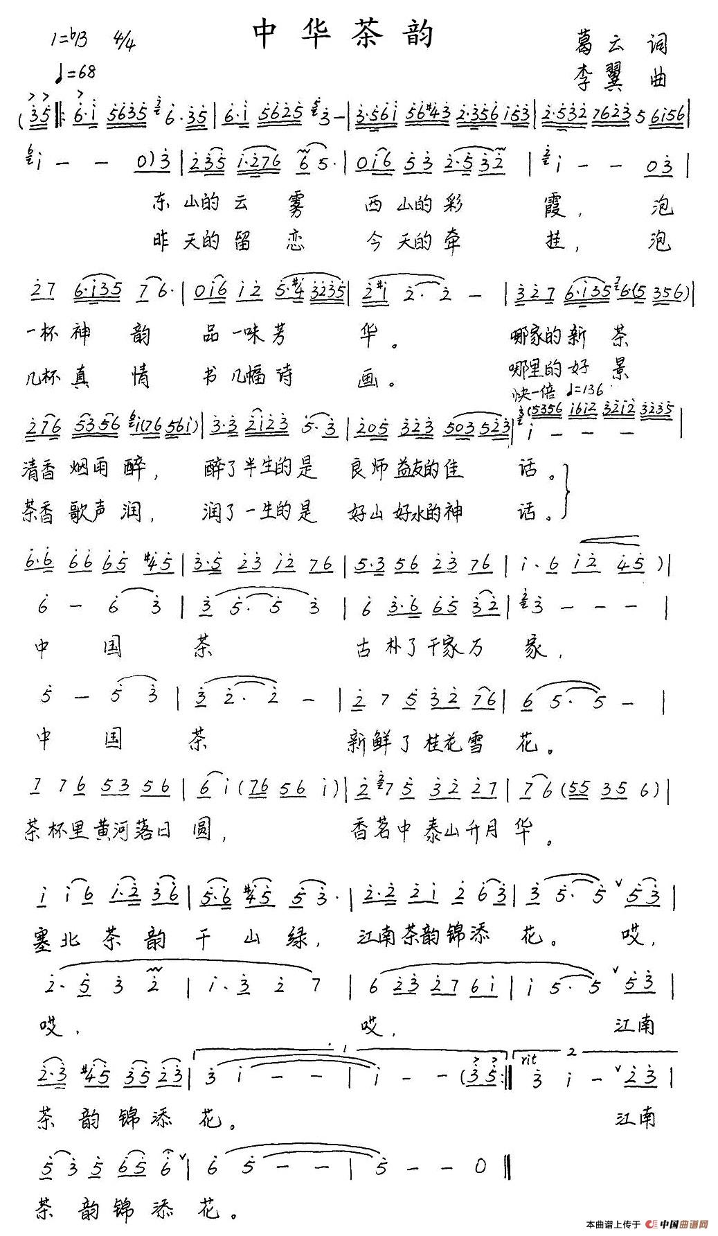 关于《中华茶韵》曲谱的评论