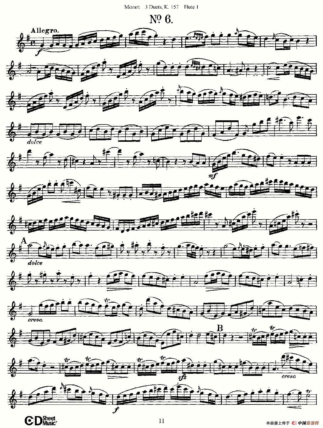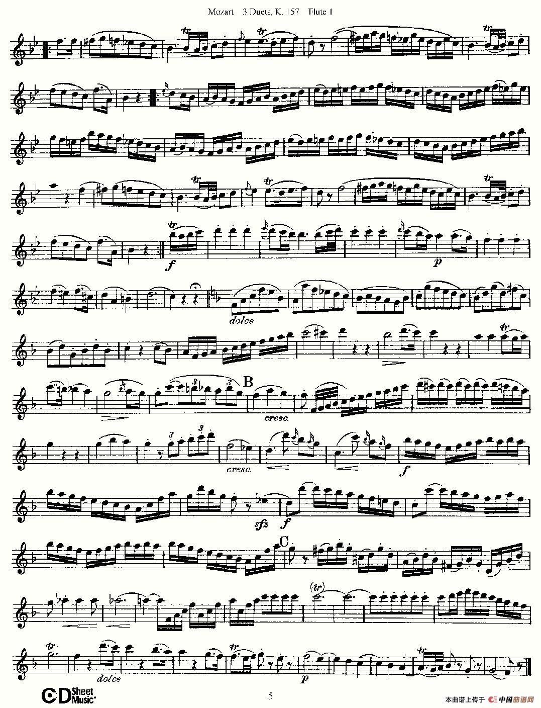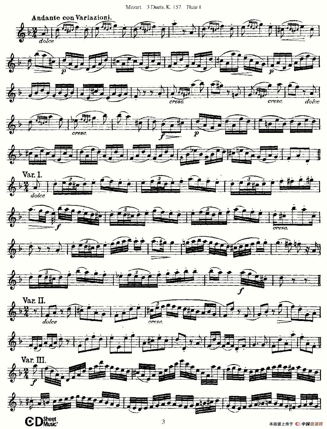 3 Duets K.157 之第一长笛(二重奏三首 K157号)
