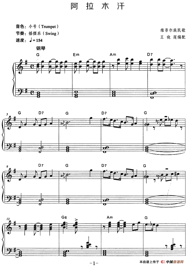 格式:五线谱 来源:《中国曲谱网》 上传:秋叶起舞