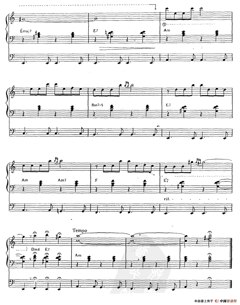 提示:在曲谱图片上单击右键,选择“图片另存为...”即可将曲谱保存到您的电脑中,打印时候可将图片插入到WORD中,调整合适大小打印即可。