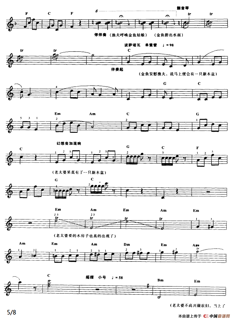 关于《渔夫和金鱼的故事》曲谱的评论