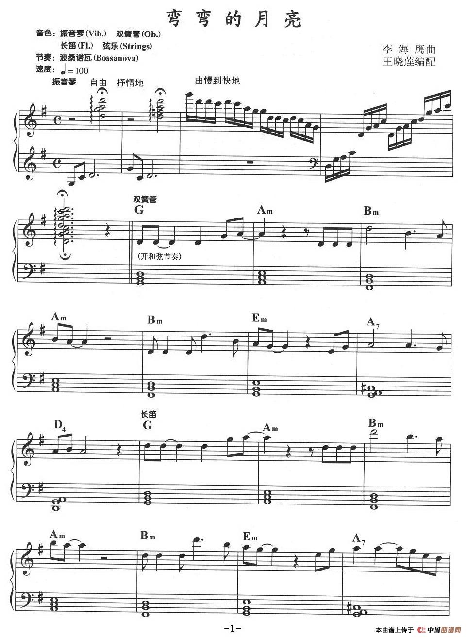 关于《弯弯的月亮》曲谱的评论