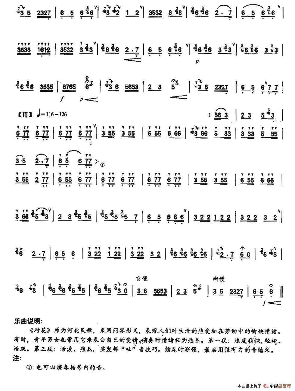 关于《对花》曲谱的评论